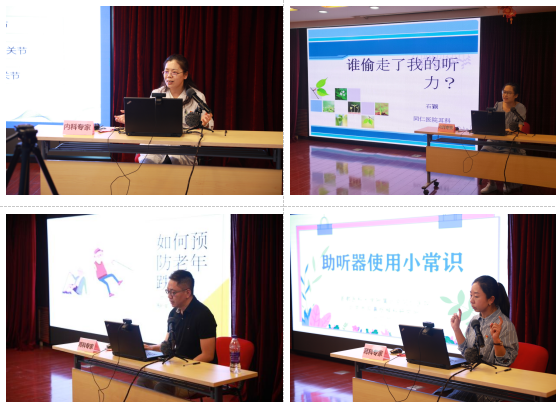 内科二支部支委崔莉讲解“关节听话身体不痛”,普及骨关节炎、骨质疏松等可致严重后果的疾病防治措施;耳科支部青年党员石颖讲解“谁偷走了我的听力”,普及引发耳聋的常见原因;耳研所支部青年骨干傅新星讲解“如何预防老年跌倒”,普及在生活中预防跌倒的小妙招;耳研所支部书记亓贝尔讲解“助听器使用小常识”,普及如何科学验配和使用助听器。