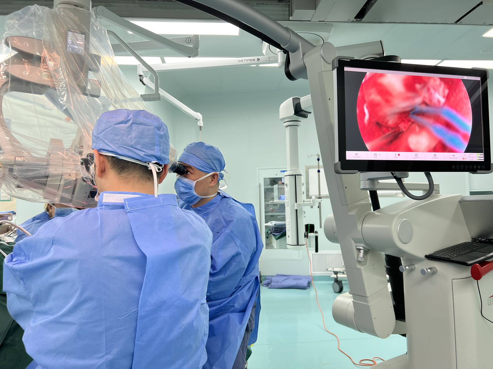 神经外科的手术完成后,眼科刘苏萌医生上台为患者进行眶内探查手术,缝合破裂眼球。随后,患者被推送至ICU病房继续治疗。目前患者生命体征平稳,此次手术的顺利完成,体现了北京同仁医院颅面创伤中心团队协作、勇于担当的进取精神。今后,中心将以领先的技术和温暖的服务更好地造福于广大患者。